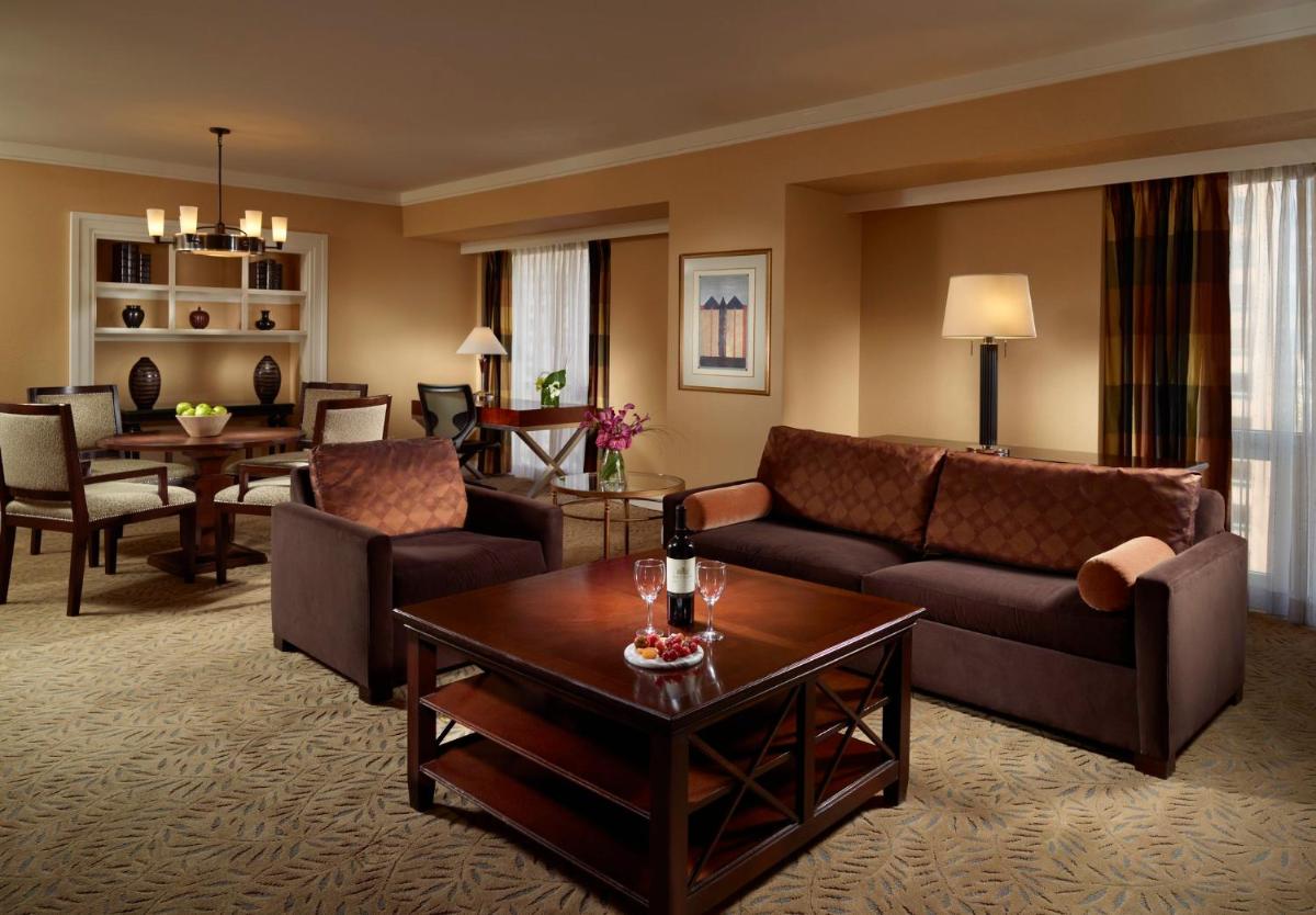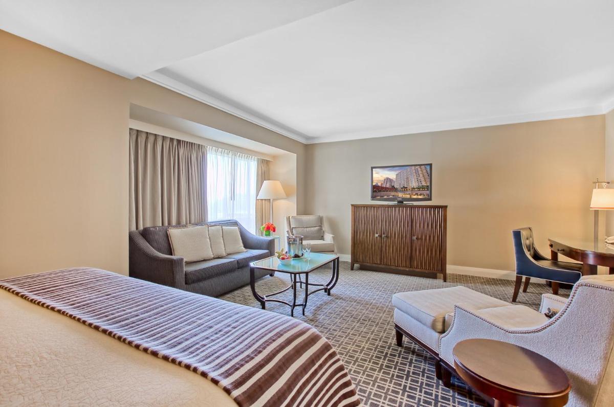 The gallery of Omni Los Angeles Hotel showcases its blend of urban modernity and understated luxury. Images reveal sleek guest rooms with tall windows framing the city, while polished marble bathrooms add elegance.